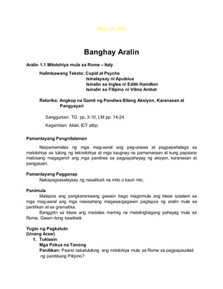 Banghay Aralin Sa Filipino 10aralin 1 1 Mitolohiya Ng Rome